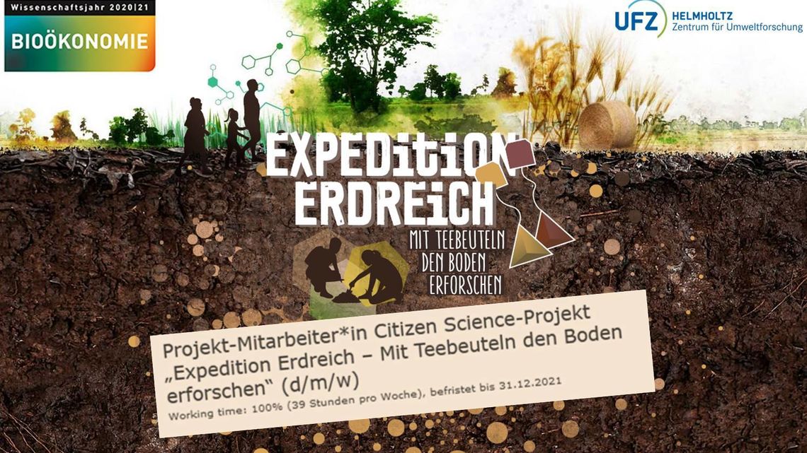 The Bonares Centre is a scientific partner of the Citizen Science project "Expedition Erdreich - Mit Teebeuteln den Boden erforschen". The project is part of the Science Year 2020/21 Bioeconomy and is funded by the BMBF. The aim of the campaign is to introduce as many people as possible to the soil and to create soil awareness. The participants explore the soil together with scientists and are involved in the evaluation process.